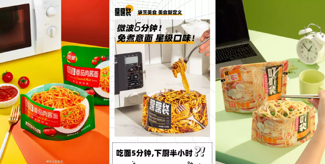 微波速食意面作为速冻领域的“新物种”,在中国市场也受到各方关注。2021-2022年,新锐速食品牌叮叮袋、烹烹袋,老牌速冻食品巨头三全,以及预制菜头部玩家国联水产等均推出了微波速食意面,以“微波加热、袋内即食”的卖点切入市场,共同推动微波意面成为速食领域的一个重要细分品类。
