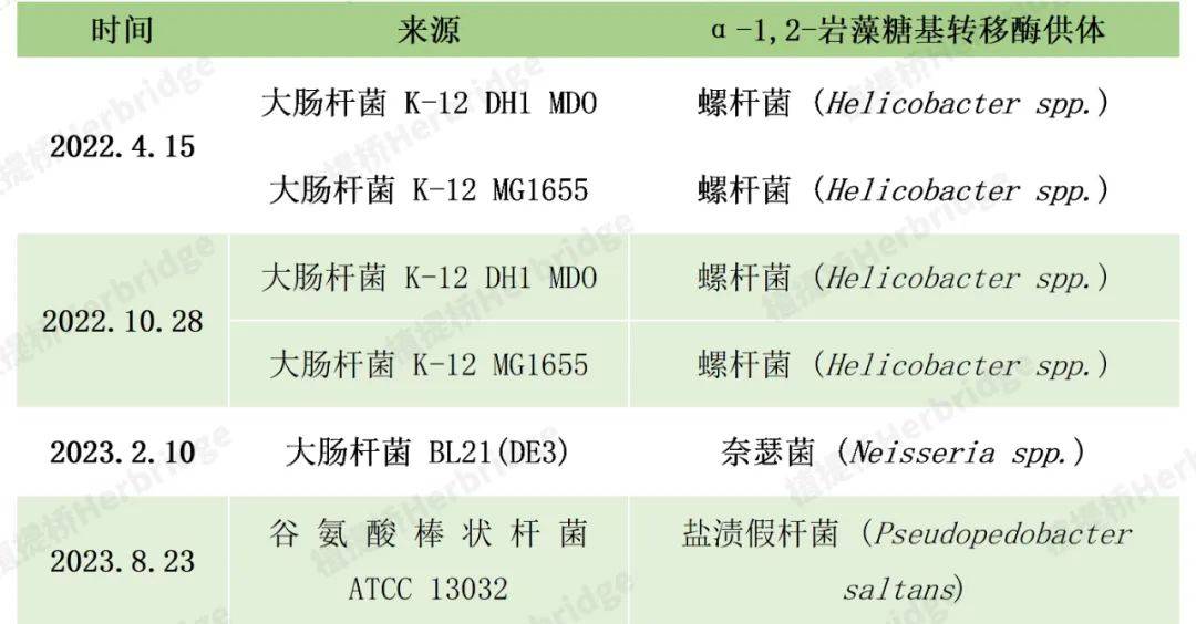 那么这几次征求意见的2'-FL,其生产菌又是哪些呢?