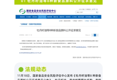 牡丹籽油等8 种新食品原料公开征求意见,重点关注:显齿蛇葡萄叶多酚、青钱柳叶多酚、发酵法L-茶氨酸