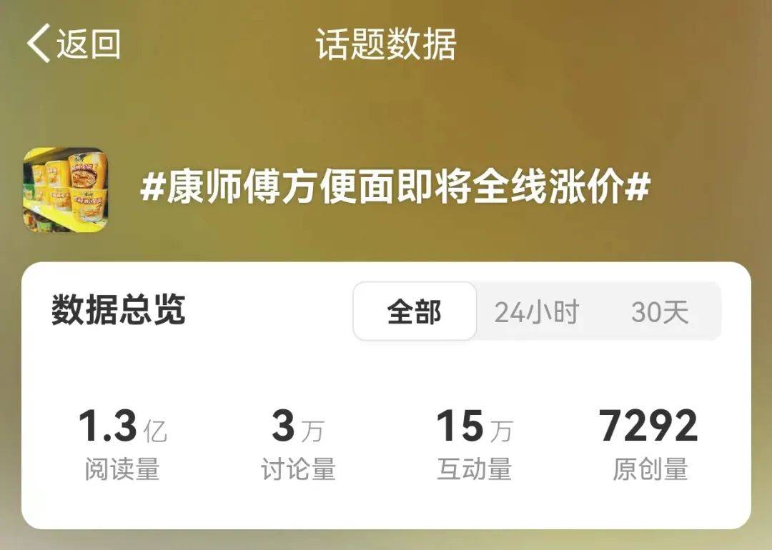 而热搜的内容,正是康师傅方便面即将涨价的消息。