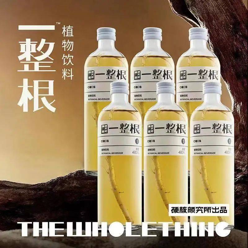 如果说上述人参零食产品较为含蓄,那么一整根人参饮料则显得简单粗暴,直接将整根人参放进瓶中,给消费者带来强烈的视觉冲击,虽然一整根人参饮料售价较高,但依旧备受消费者关注,很多人更是冲其直接了当的展示方式购买。