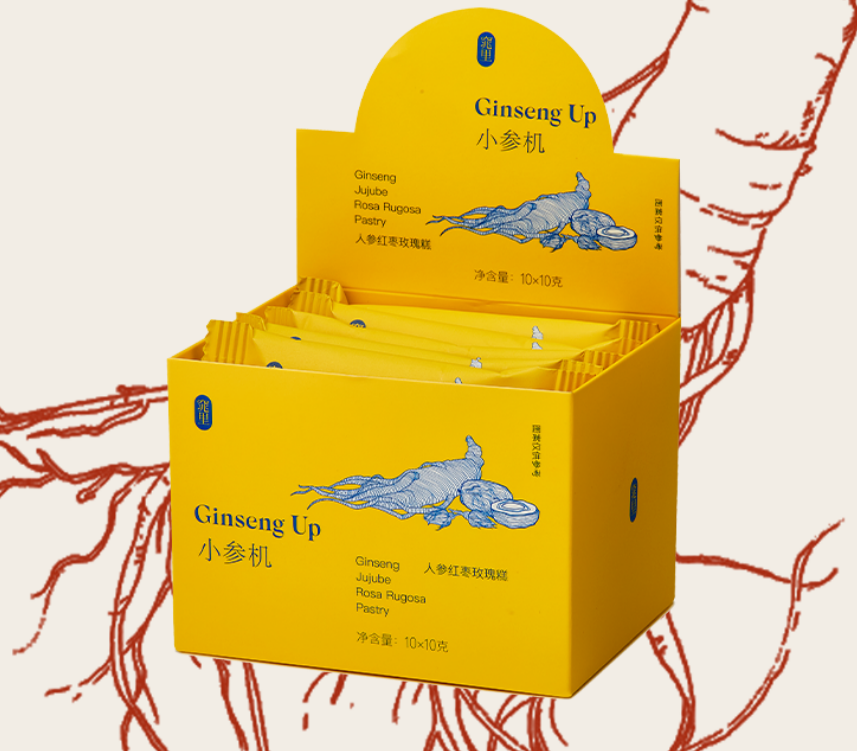 以“轻滋补”的方向降低人参的接触门槛,触达原本没有吃人参习惯的人群,该品牌首发产品为人参能量蛋白,人参能量小方,希望通过零食的方式让人参融入生活。