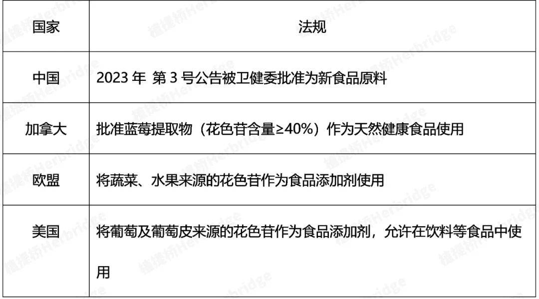 蓝莓花色苷不同国家法规应用