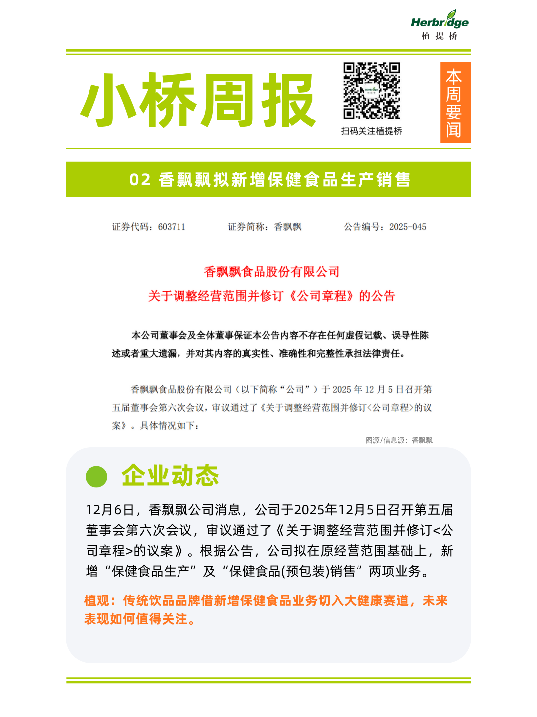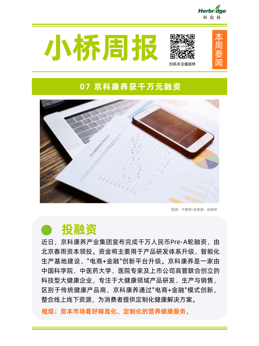 一周要闻|14项保健食品拟立项国家标准征求意见;迈胜、三只松鼠等上新;雀巢、京东健康、香飘飘新动态
