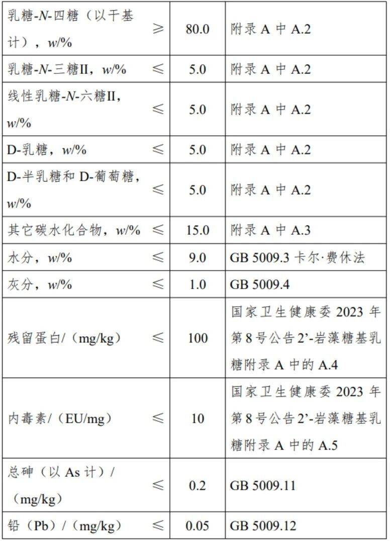 本次征求意见的乳糖-N-四糖作为食品营养强化剂新品种,用于调制乳粉(仅限儿童用乳粉)(食品类别01.03.02)、婴儿配方食品(食品类别13.01.01)、较大婴儿和幼儿配方食品(食品类别13.01.02)、特殊医学用途婴儿配方食品(食品类别13.01.03)。