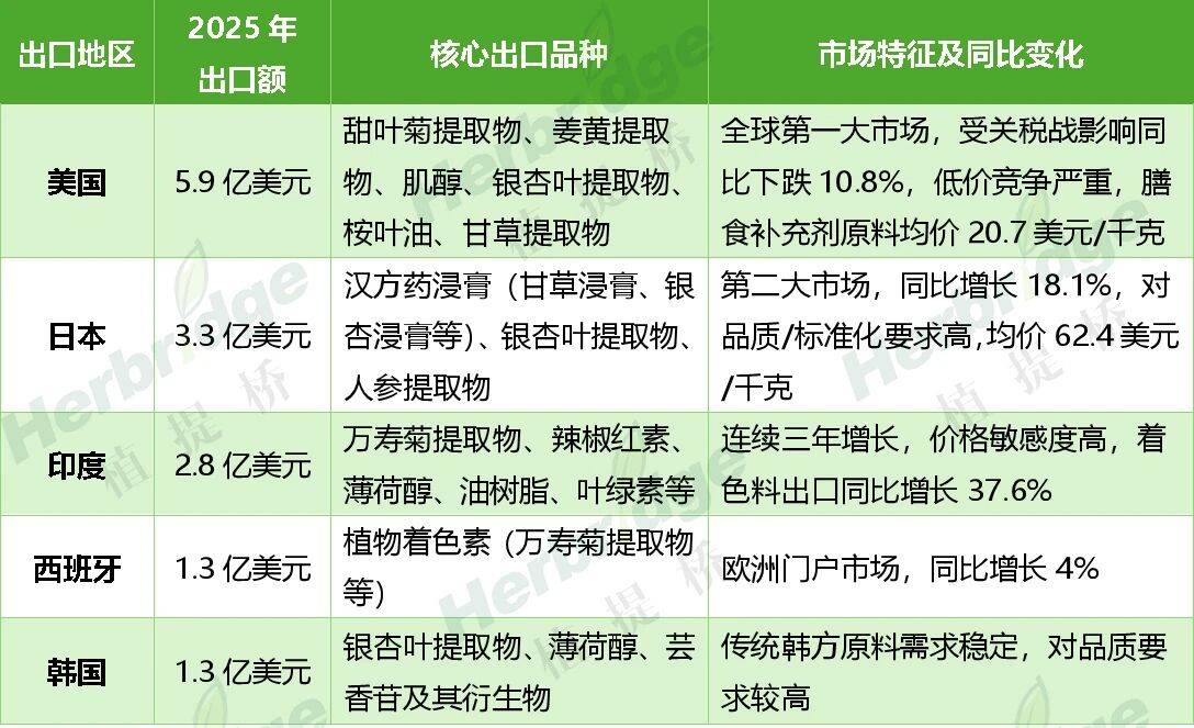 2025年植物提取物主要出口市场及核心信息