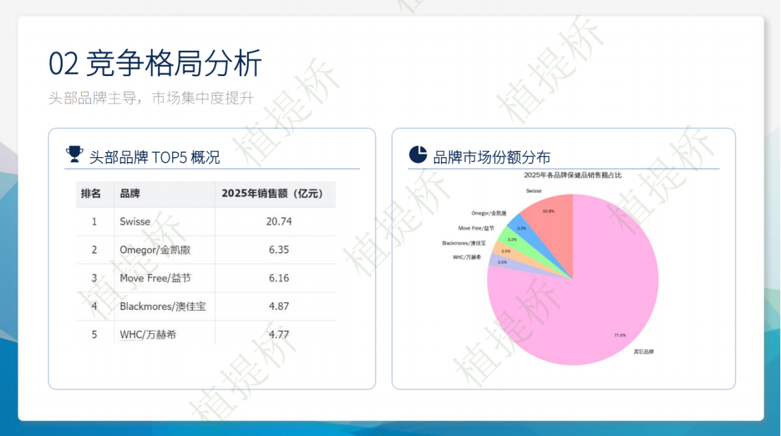 在竞争格局方面,国际知名品牌如Swisse、Move Free等占据主导地位,市场头部效应明显。这表明品牌力和产品力是赢得市场的关键,同时也为新品牌通过差异化竞争提供了机会。