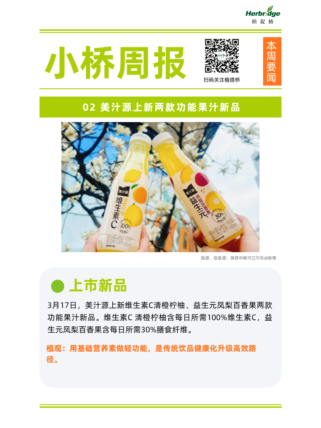 2、美汁源上新两款功能果汁新品