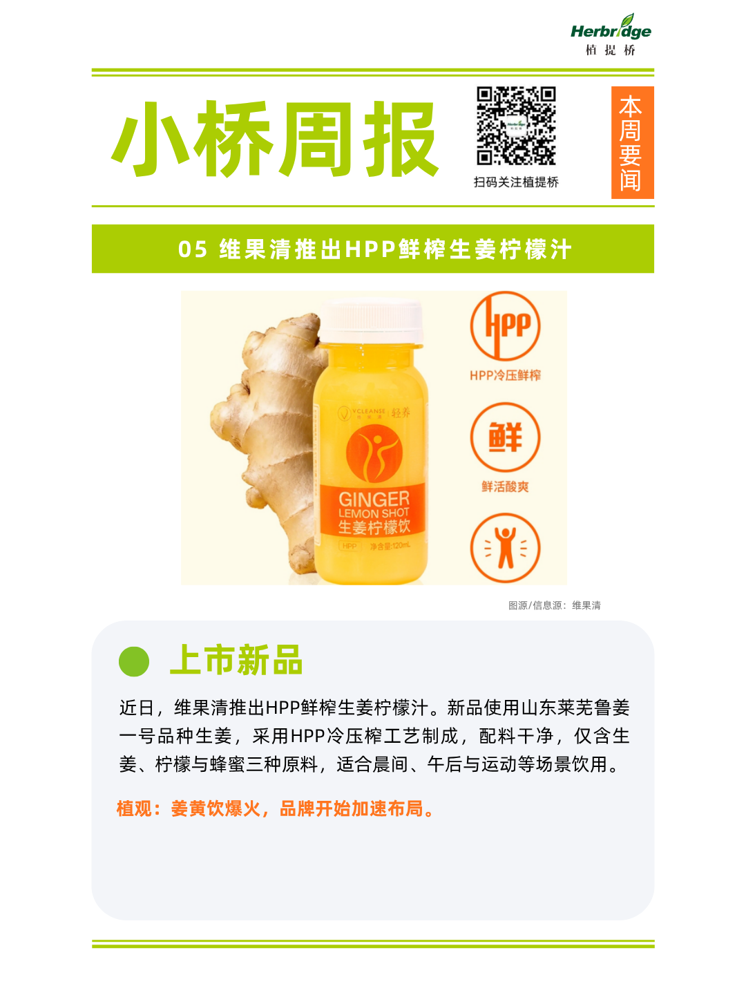 5、维果清推出HPP鲜榨生姜柠檬汁
