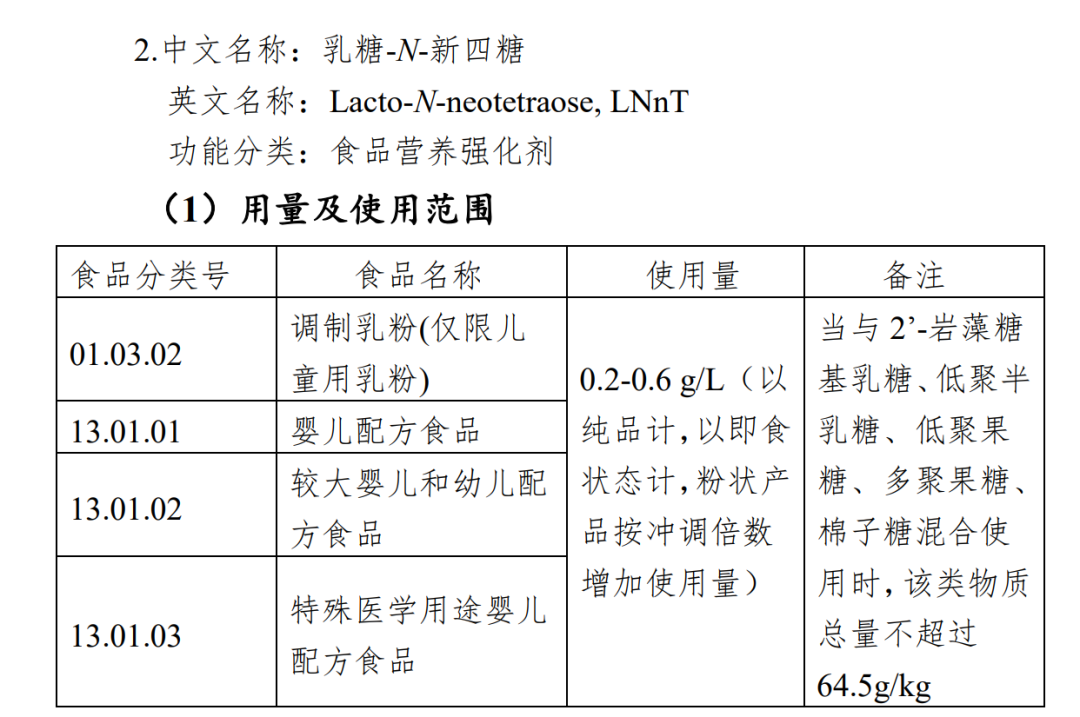 乳糖-N-新四糖在2022年10月28日开始第一次征求意见,并提供了具体的理化指标和检测方法。