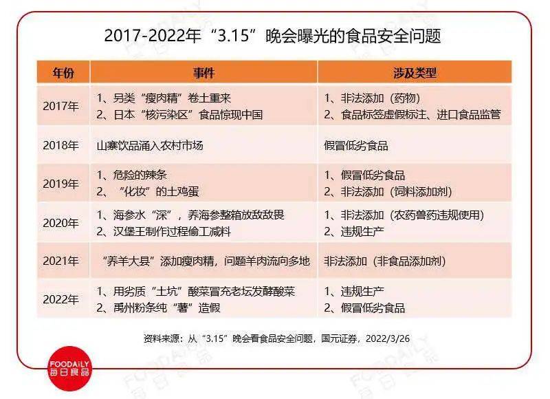 从“3.15”晚会看食品安全问题,国元证券,2022/3/26