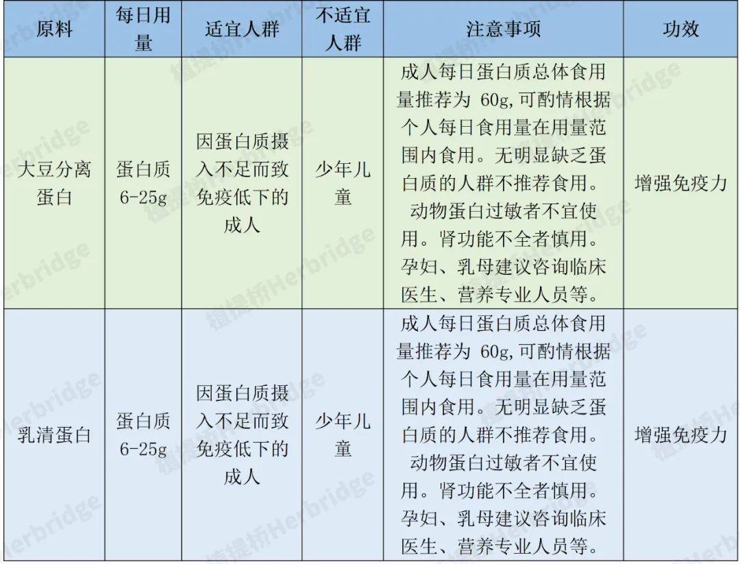 备案保健食品原料:大豆分离蛋白、乳清蛋白功效及用量