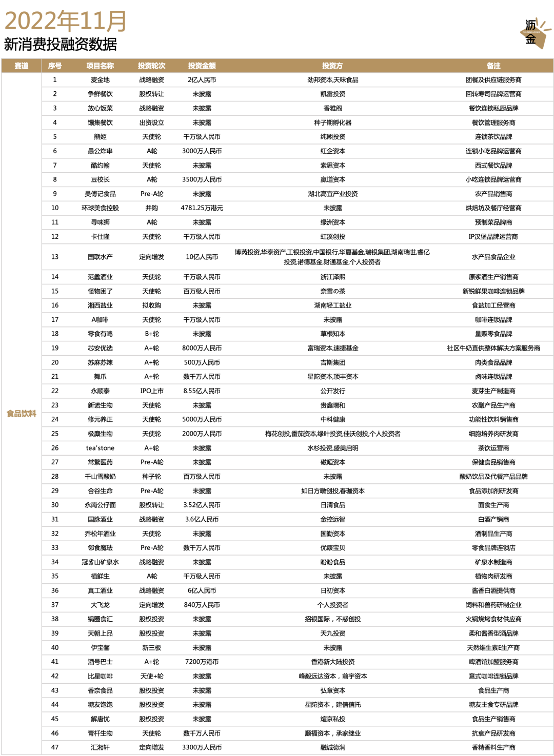 11月酒饮类品牌投融资实况